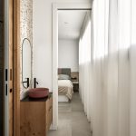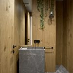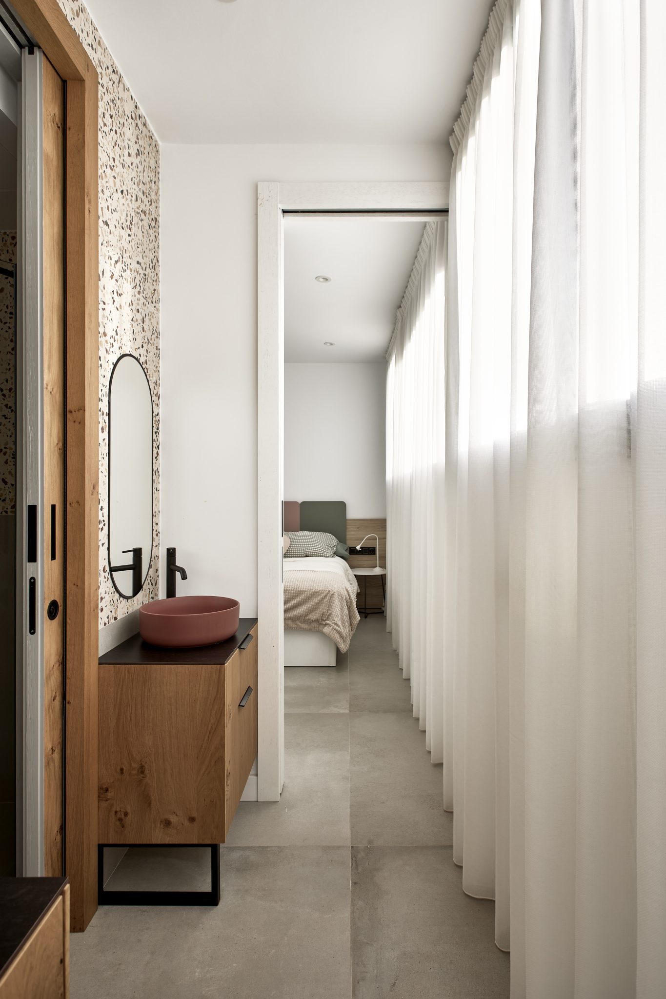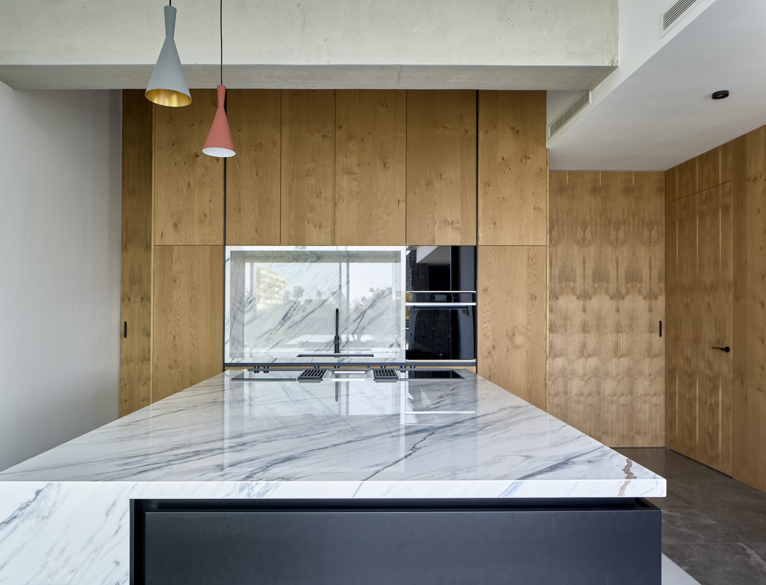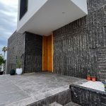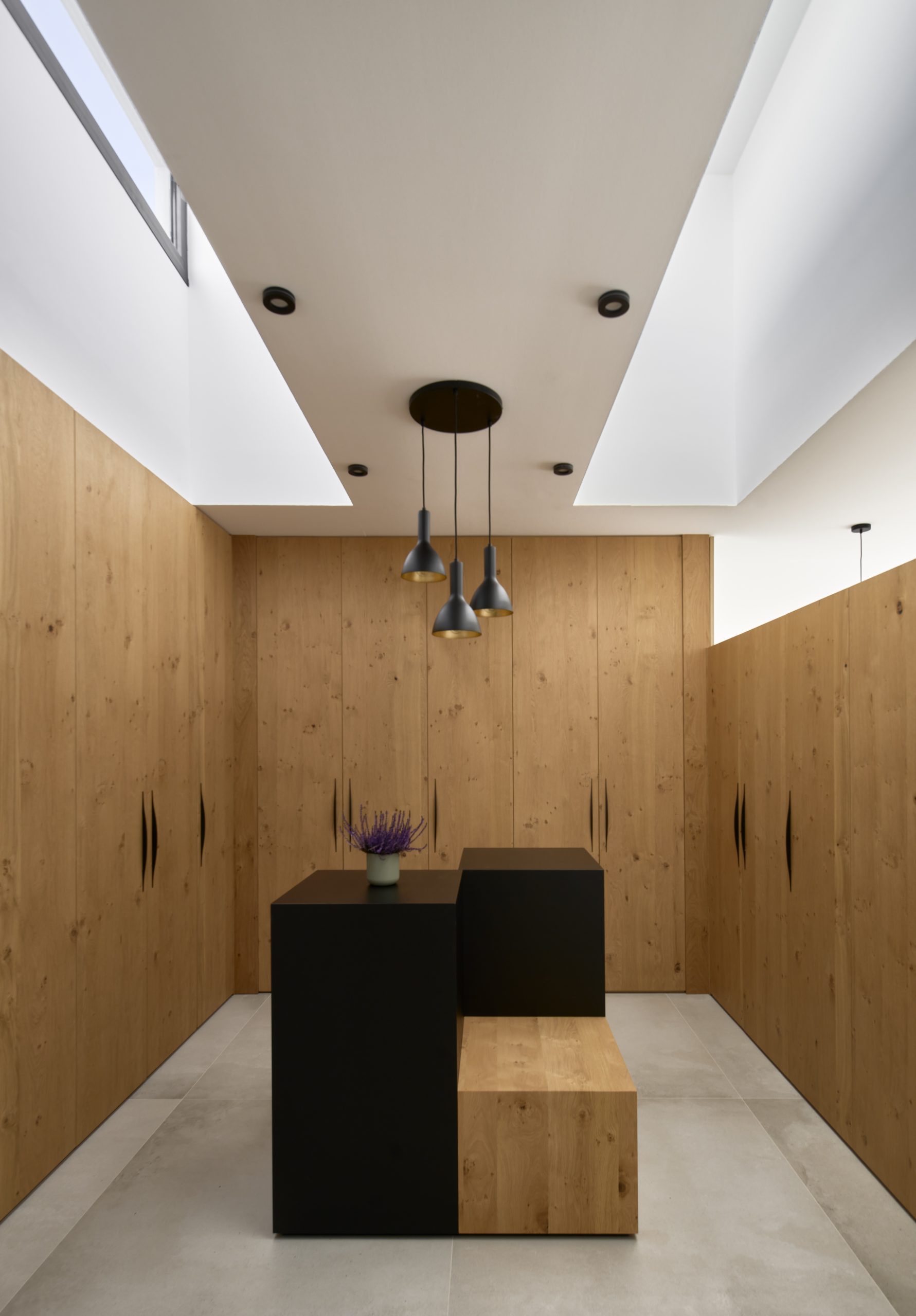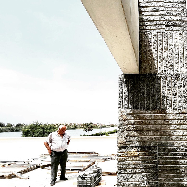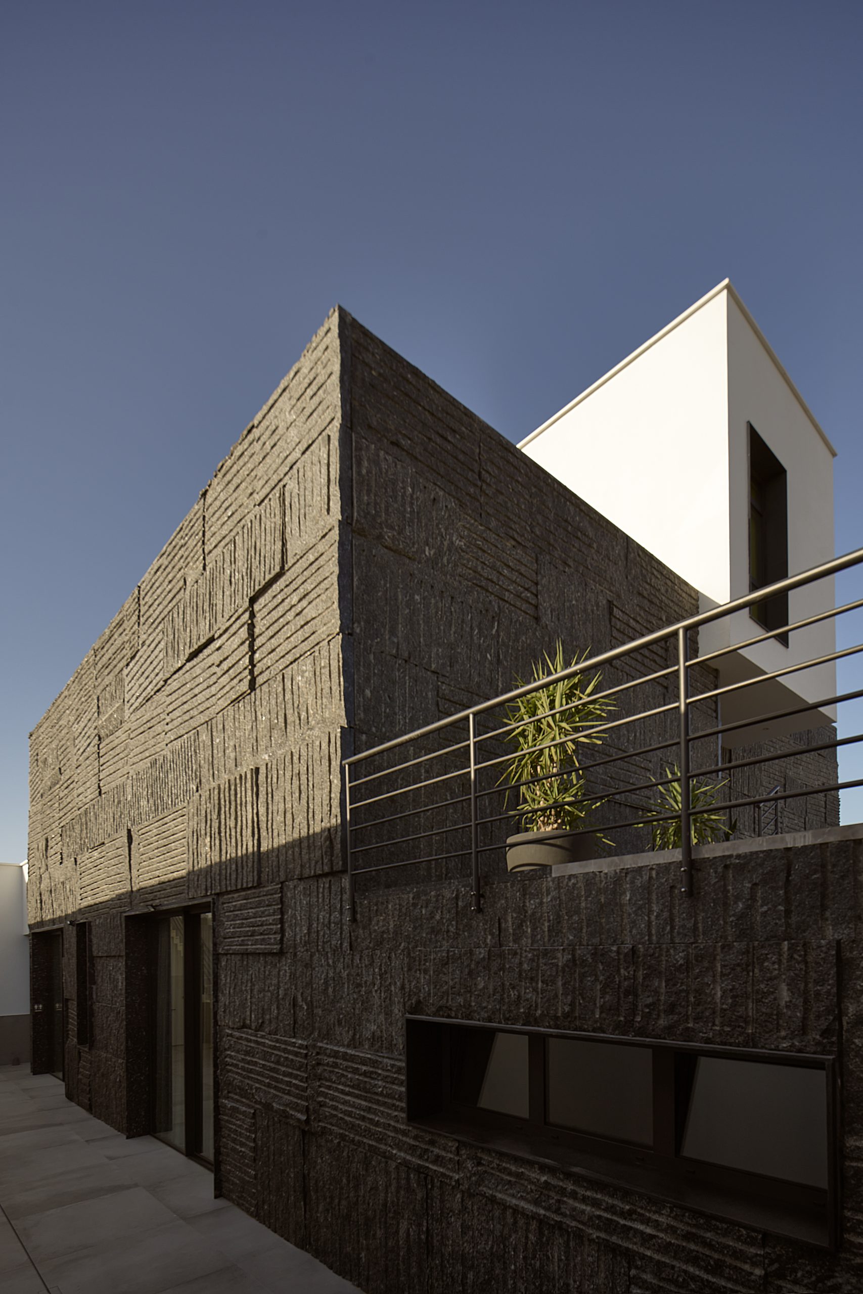 En primera línea de lago, con unas vistas impresionantes que son el motor de la propuesta, proyectamos esta vivienda absolutamente abierta al sur mediterráneo, lo que contrasta con el material granítico y cerrado del resto de la fachada, que le proporciona su aspecto tan característico.